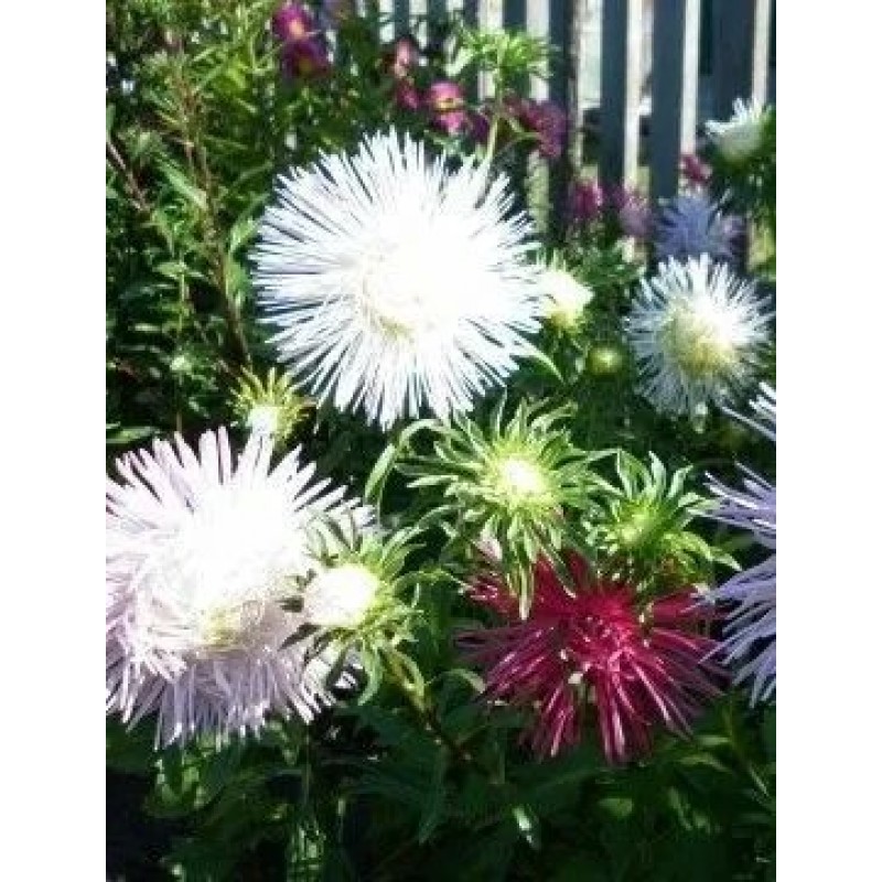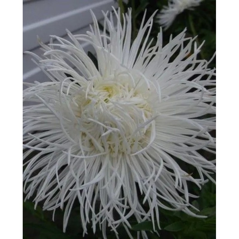 Эффектная белоснежная астра с экстракрупными игольчатыми соцветиями диаметром 15-17 см! Кусты высотой около 50 см, пирамидального типа. На каждом одновременно раскрыты 10-12 соцветий. Сорт используется для оформления садовых цветников и на срезку в букеты. При этом соцветия сохраняют декоративность в вазе до двух недель.