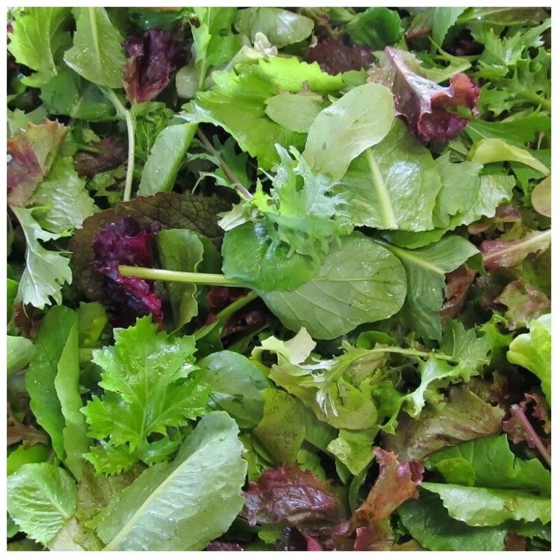 Разноцветная смесь для получения продукции бэби-лиф. Листочки молодых растений отличаются высоким содержанием селена и йода, что стимулирует иммунную систему. Компоненты: салаты Адамант – 15%, Анапчанин – 10%, Дубачек МС – 15%, Мишутка – 10%, 4 сезона – 10%, капуста японская Мизуна – 15%, индау Диковина – 15%, цикорный салат Пала росса – 10%.