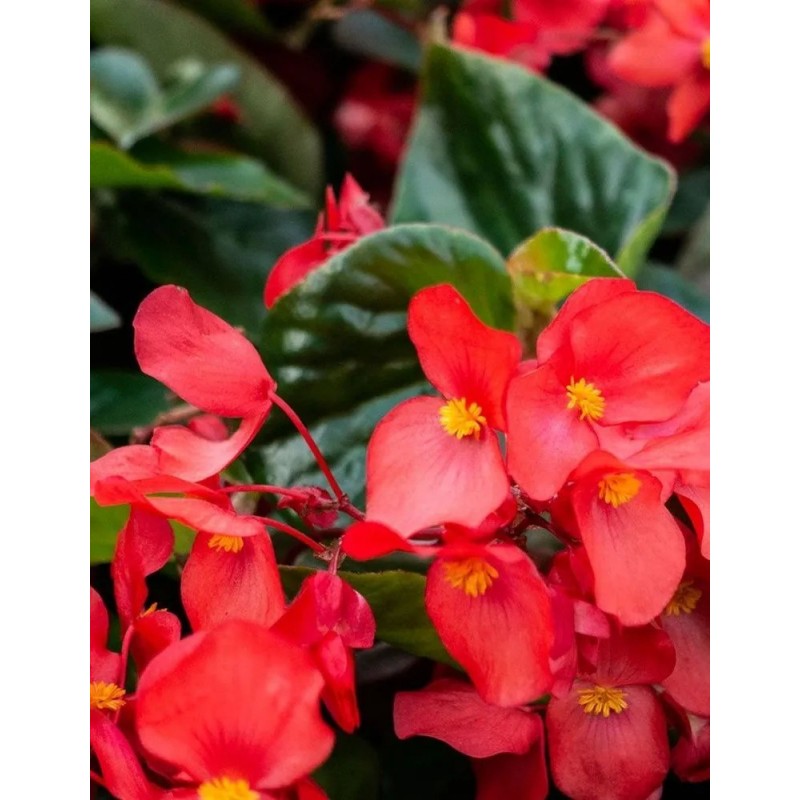 Вечноцветущая красавица бегония от чешской компании смотрится богато и нарядно в течение всего сезона. Компактный куст высотой 20 см с ярко-зеленой листвой обильно цветет с мая до первых заморозков (диаметр цветка 4-5 см). Предпочитает солнечные места, но неплохо растет и в лёгком затенении. Идеальное место для посадки – передний план рабаток, бордюры, садовые и балконные контейнеры. Бегония вечноцветущая хороша в групповых посадках: используя сорта, отличающиеся окраской листьев и цветков, можно создать уникальные ковровые клумбы с графическим узором.