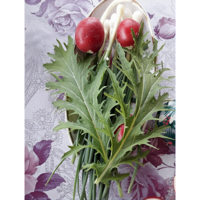 Раннеспелый холодостойкий сорт. Период от всходов до срезки на зелень 25-30 дней. Подходит для выращивания в открытом и защищенном грунте. Урожайность высокая – 3,2-3,5 кг/м2. Розетки листьев высотой 20-25 см, 28-30 см, массой 50-70 г. Листья крупные, гладкие, зубчатые. Ткань листьев нежная, сочная, с горчичным привкусом и приятным ароматом. Используется в свежем виде для приготовления салатов, бутербродов, гарниров к мясным и рыбным блюдам.