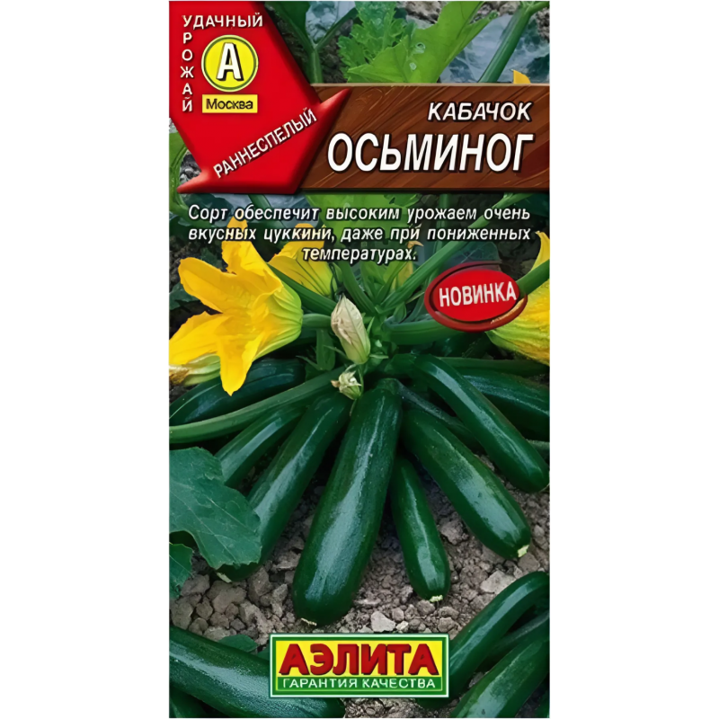 Раннеспелый высокоурожайный сорт цуккини. От всходов до начала сбора товарных плодов проходит 40-45 дней. Рекомендуется для выращивания в открытом грунте. Растение кустовое, с малым количеством листвы, компактное. Плод цилиндрический, массой до 1 кг. Вкус сладкий и нежный. Мякоть плотная, почти без семян, поэтому сорт пригоден для приготовления любых блюд и заготовок. Цуккини Осьминог устойчив к пониженным температурам и мучнистой росе. Урожайность – до 10 кг/м2.