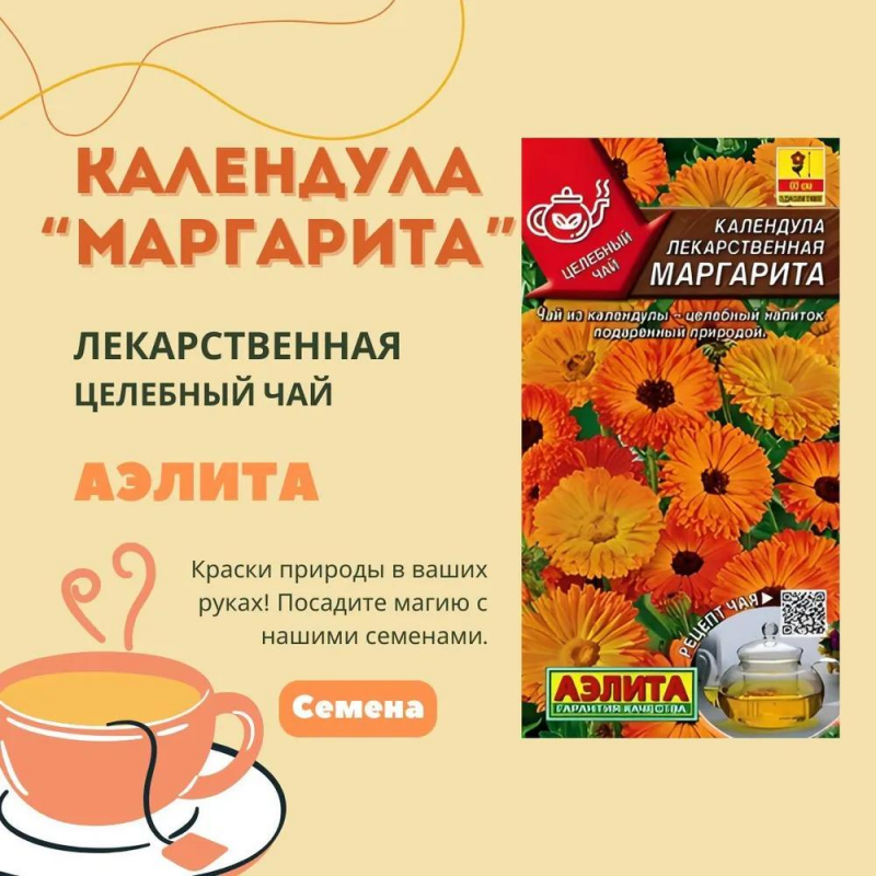 Одно из самых популярных садовых растений, известное еще как ноготки. Пользуется любовью садоводов за неповторимое очарование и легкость в выращивании. Обладает лечебными свойствами. Растения прямостоячие, высотой 50-60 см, цветут обильно и продолжительно весь сезон. Соцветия-корзинки яркие, простые и полумахровые. Для приготовления чая и настойки используют соцветия календулы, которые собирают каждые 3-5 дней, а затем высушивают. Чай из календулы — вкусный напиток, успокаивающий нервную систему, утоляющий боль, обладающий бактерицидными свойствами.