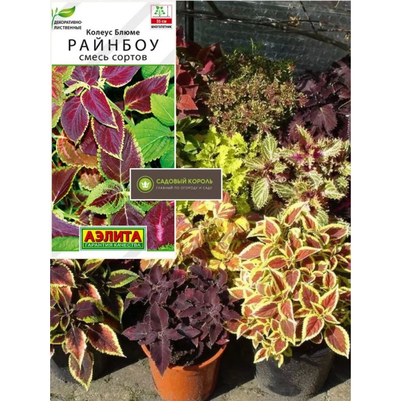 Великолепная смесь сортов декоративно-лиственной культуры с пестрой окраской. Используется как многолетнее комнатное растение или как садовый летник. Растения выглядят эффектно на протяжении всего теплого сезона. Кусты округло-раскидистые, примерно одинаковые в высоту* и ширину (25-35 см). При выращивании на солнце они компактные, в полутени более раскидистые. Растут и развиваются быстро, не требуя особого ухода. Колеус отлично смотрится как соло, так и в составе композиций, в горшках и на клумбах. Для продления периода декоративности необходимо удалять цветоносы. * Высота растений зависит от условий выращивания.