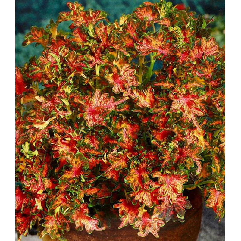 Невероятно красивый и экзотический гибрид чешской селекции. Яркие многоцветные ажурно-кудрявые листья очень привлекательно смотрятся весь сезон. Кустики ветвистые, высотой* 40-50 см. При выращивании на солнце они более компактные, в небольшом затенении – более раскидистые. Растения украсят клумбы, садовые контейнеры и цветники до первых заморозков. В открытом грунте выращивают как однолетник, в комнатных условиях выращивают как многолетник. Для продления декоративности рекомендуется удалять цветоносы. *Высота растений зависит от условий выращивания.