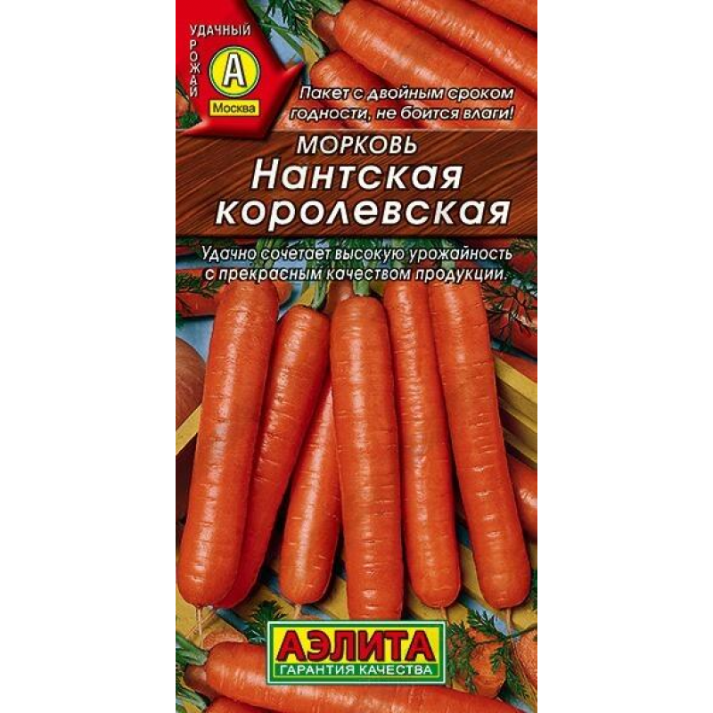 Превосходный сорт популярного сортотипа Нантская. Среднеспелый, от всходов до массовой уборки 95-105 дней. Корнеплоды длиной 16-18 см, массой 100-160 г, с гладкой поверхностью. Сердцевина небольшая. Повышенное содержание каротина делает их незаменимыми для детского и диетического питания. Корнеплоды отлично хранятся до нового урожая.