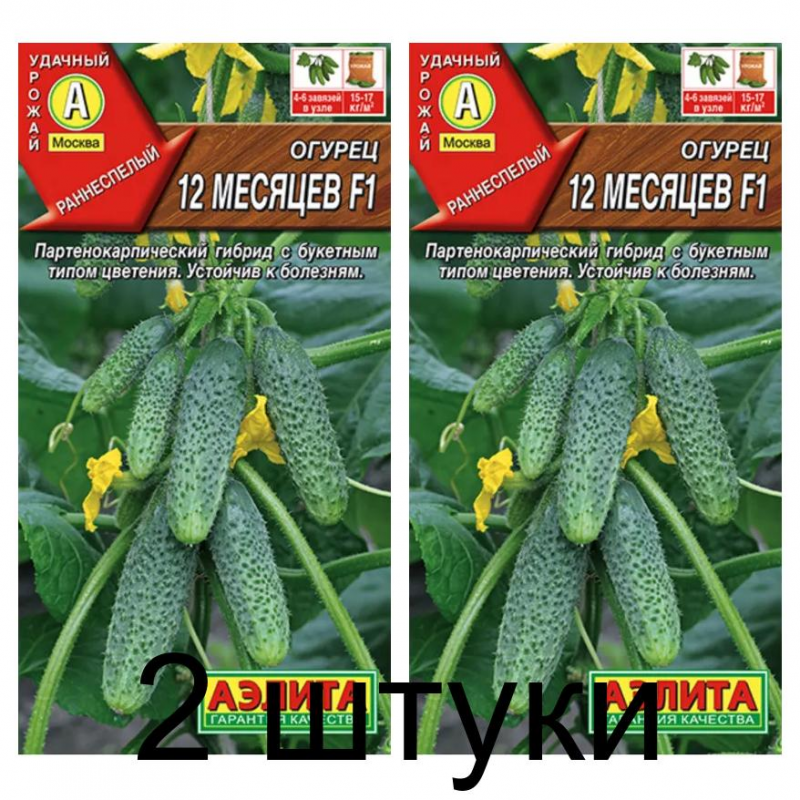 Раннеспелый партенокарпический гибрид. Закладывает от 4 до 6 завязей в узле. От всходов до плодоношения 42-45 дней. Растения женского типа цветения. Зеленцы белошипые, короткие, выравненные, долго не перерастают. Вкус отличный, без горечи. Подходят для засолки и консервирования. Гибрид устойчив к ЛМР и МР. Товарная урожайность в открытом грунте – 5-8 кг/м2, под пленкой – 15-17 кг/м2.