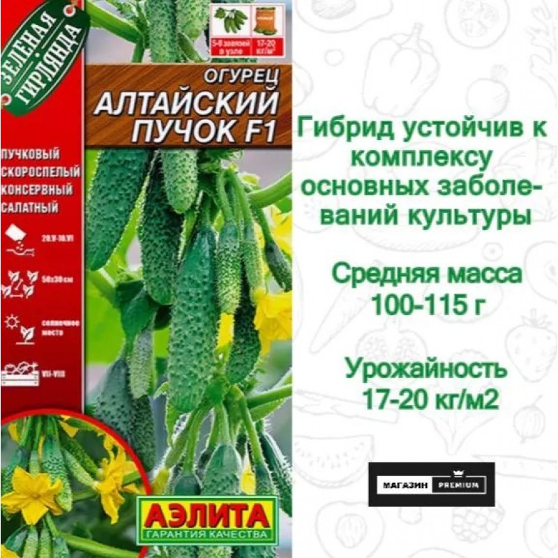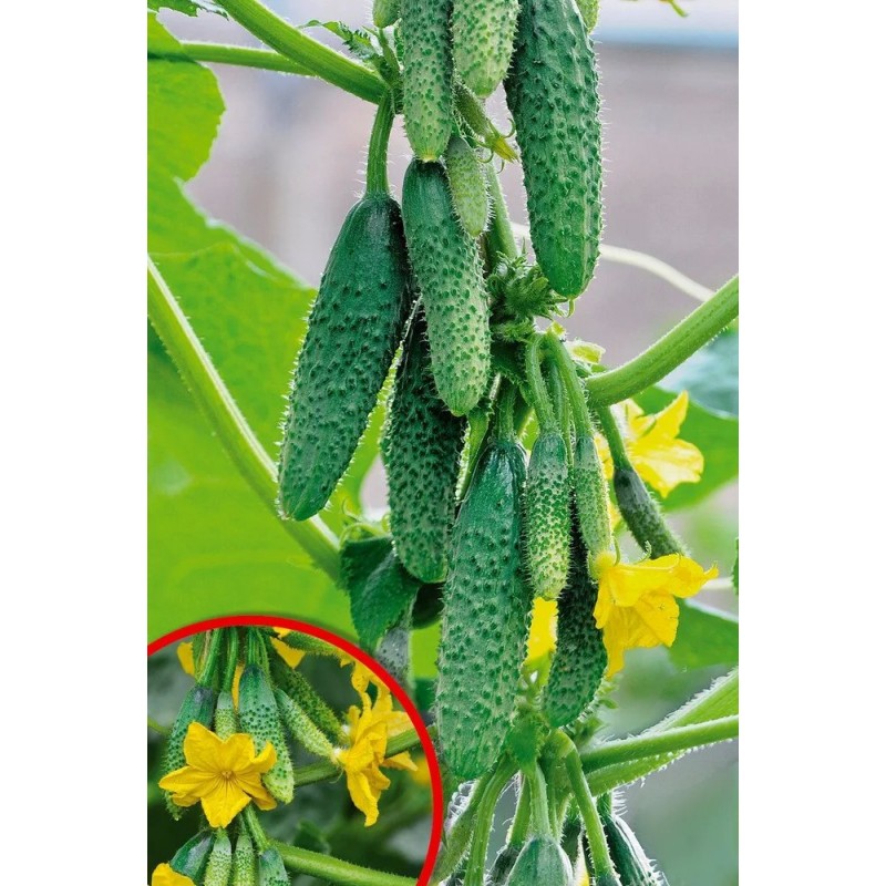 Скороспелый, очень вкусный и мегаурожайный! Гибрид для свежих салатов и засолки. В пленочных теплицах позволяет собирать до 17-20 кг/м2 продукции. Растения сильнорослые, средневетвистые, завязи формируют пучками – по 5-8 шт. в каждом. При хорошем уходе и до 10 плодов в одном узле. От всходов до сбора первых хрустящих ароматных белошипых огурчиков проходит 40-43 дня. Средняя масса 100-115 г. Гибрид устойчив к комплексу основных заболеваний культуры.