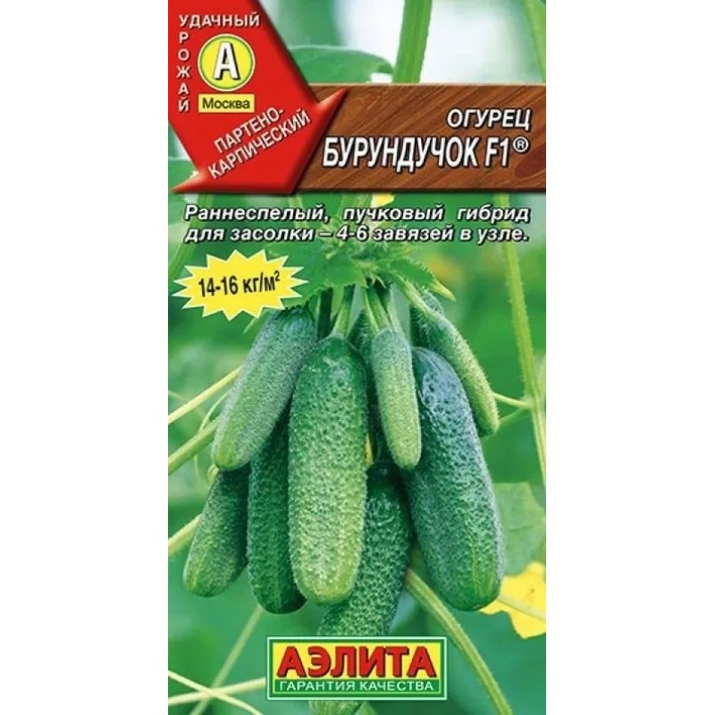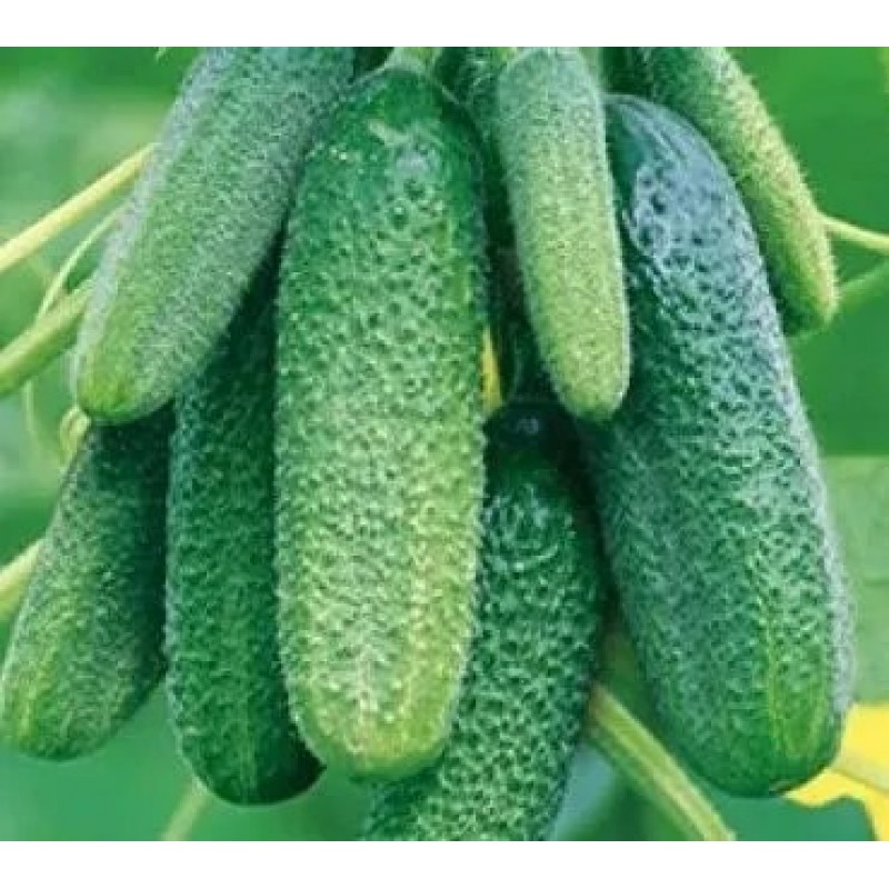 Великолепный партенокарпический гибрид с пучковым заложением завязей. Первый урожай собирают на 40-44 день после всходов. Плодоношение обильное и длительное. В каждом узле формируется от 4 до 6 завязей. Зеленцы массой 80-95 г, короткие, сочные, хрустящие, не перерастают и не горчат. Отлично подходят для засолки, сохраняя упругость и плотность. Гибрид устойчив к кладоспориозу, ВОМ, МР и ЛМР. Урожайность под пленкой до 16 кг/м2.