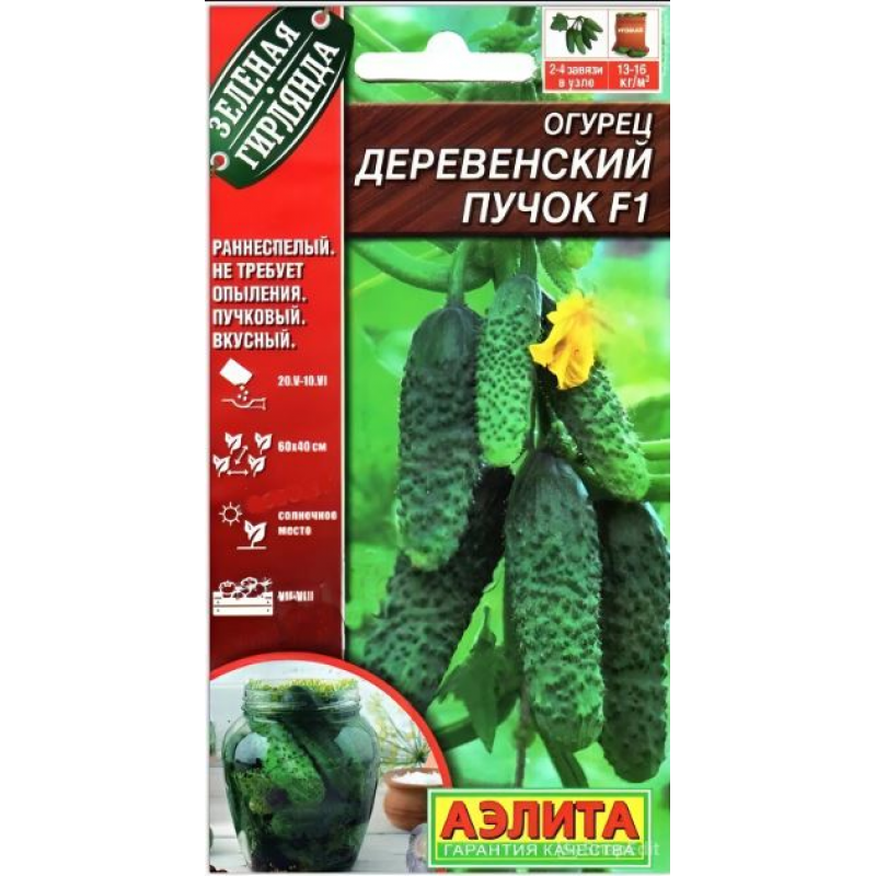 Хрустящий, ароматный, сочный, без горечи – один из лучших раннеспелых гибридов! Вкусный не только в свежем виде, но и в разнообразных домашних заготовках. Не требует опыления, устойчив к комплексу болезней культуры, выращивается в о/г и в теплицах. Урожай формируется через 40-43 дня от всходов. Завязи образуются пучками, по 2-4 плода в каждом узле. Огурчики белошипые, массой около 80-100 г. Урожайность в з/г до 13-16 кг/м2.