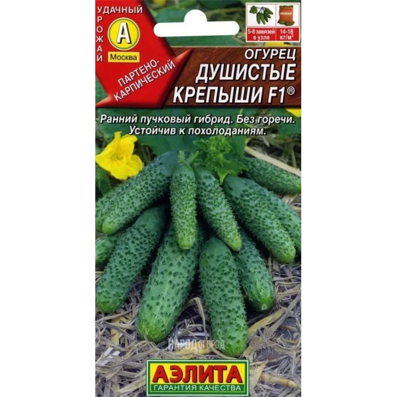 Раннеспелый партенокарпический гибрид. От всходов до технической спелости первых плодов 42-45 дней. Цветение букетное. Завязи формируются пучками по 4-6 штук. Средняя масса товарного плода 90-110 г. Вкус превосходный – плоды генетически без горечи. Использование универсальное: свежее потребление, баночное консервирование, засолка. Гибрид устойчив к ВТМ, МР и корневым гнилям. Хорошо переносит низкие положительные температуры. Толерантен к пероноспорозу. Урожайность 14-18 кг/м2.