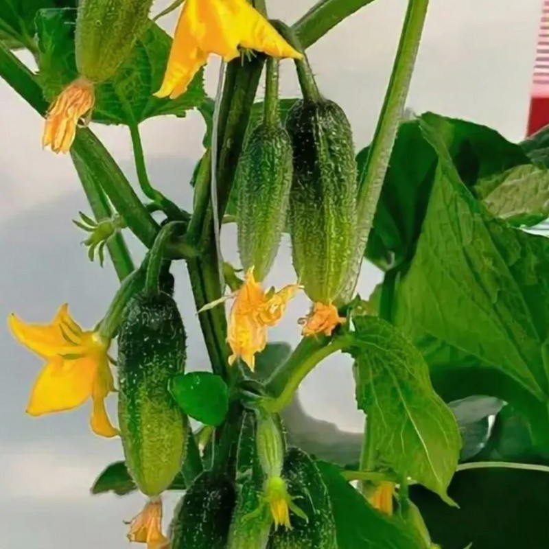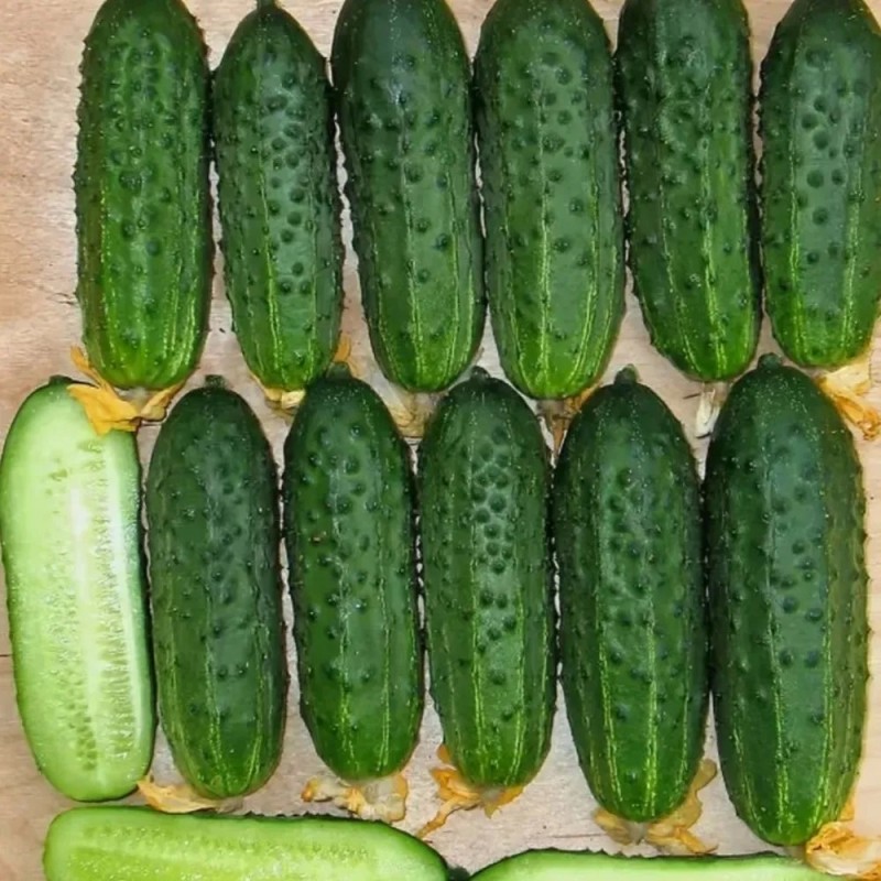Гибрид сочетает лучшие качества партенокарпических гибридов: ультраскороспелость, букетный тип цветения, устойчивость к неблагоприятной погоде и болезням. Плодоносит на 38-40 день от всходов. В узлах закладывает по 4-6 завязей! Огурчики выравненные, никогда не перерастают и не горчат. Отличаются замечательным вкусом и ароматом. Идеально подходят для консервирования в виде пикулей (3-5 см) и мини-корнишонов (5-7 см).