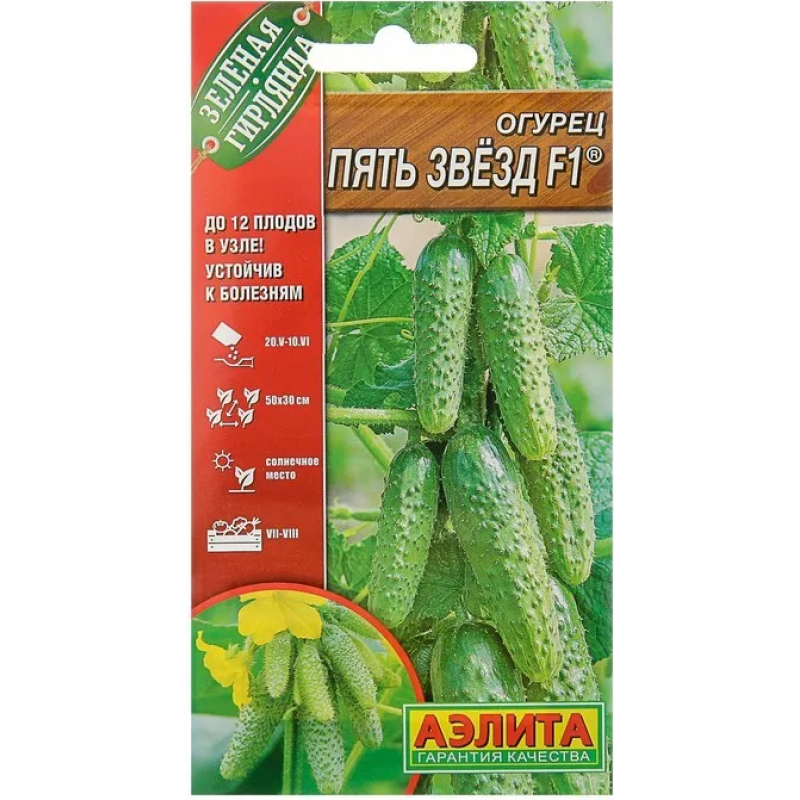 Суперурожайный партенокарпический гибрид с букетным типом цветения. Формирует от 5 до 8 огурчиков в каждом узле, а при хорошем уходе – до 12! Первые плоды собирают на 40-42 день после всходов. Зеленцы короткие, длиной 11-13 см, с великолепным освежающим вкусом, сочные и хрустящие. Прекрасно подходят для консервирования и засолки в деревянных бочках. Гибрид устойчив к кладоспориозу, ВОМ, МР и ЛМР. В теплицах плодоносит до начала октября. Урожайность высокая - 16-20 кг/м2.