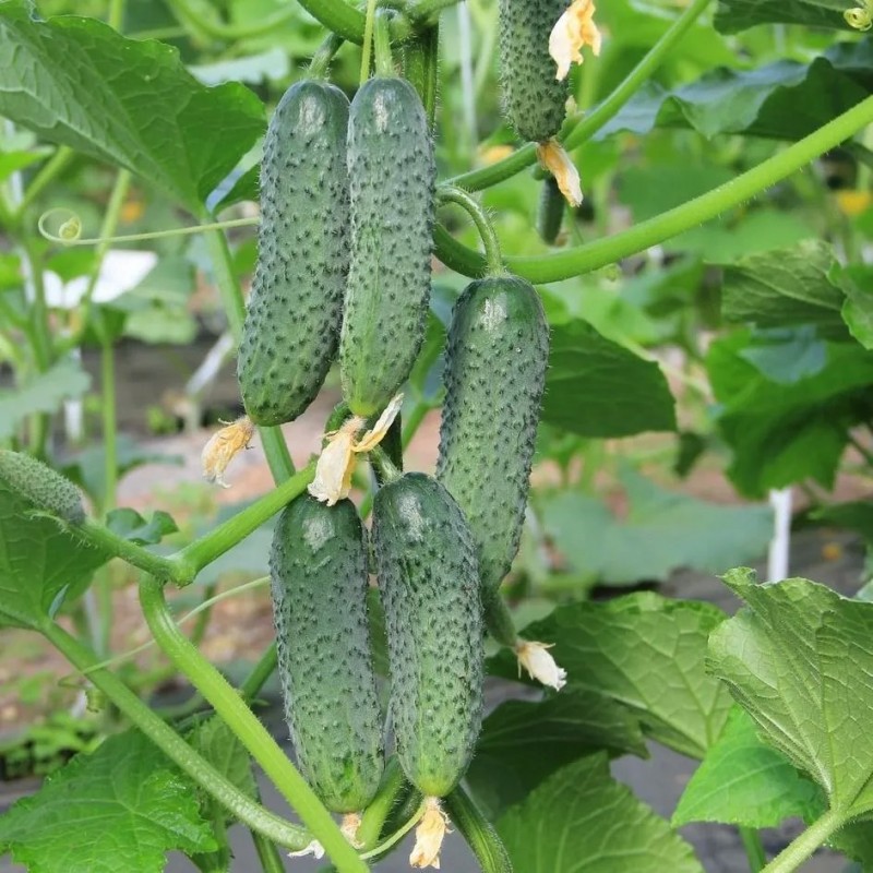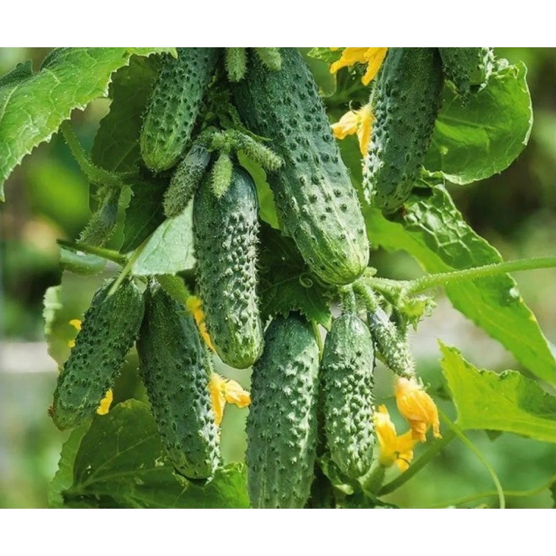 Ранний партенокарпический гибрид с пучковым заложением завязей. От всходов до плодоношения 42-45 дней. Растения сильнорослые, женского типа цветения. В каждом узле формируется 4-6 завязей. Огурчики темно-зеленые, длиной 10-13 см и массой 100-120 г, сочные и хрустящие, совершенно без горечи. Использование универсальное. Гибрид толерантен к основным болезням культуры. Урожайность в теплице 13-15 кг/м.