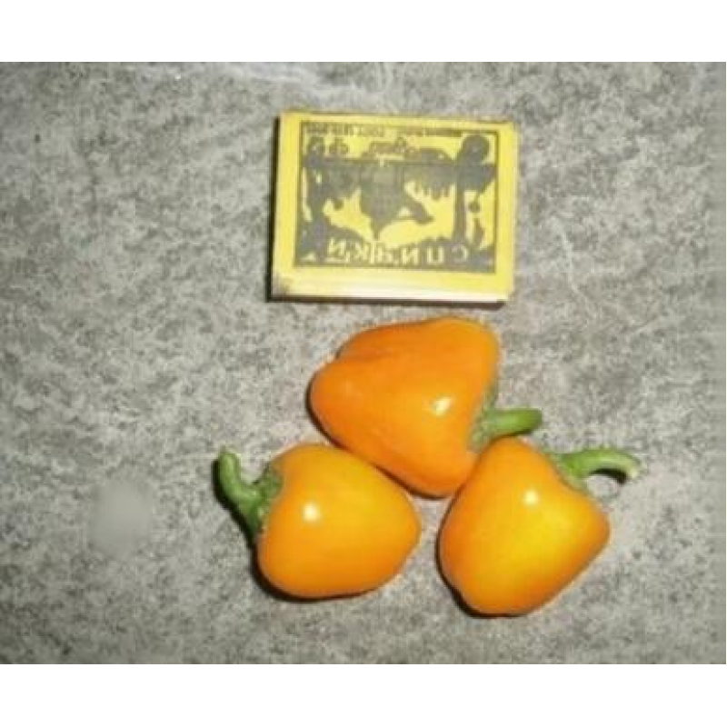 Раннеспелый гибрид с ярко-оранжевыми плодами насыщенного вкуса и аромата. Неприхотливый, может выращиваться в открытом и защищенном грунте. Высота компактных кустиков около 40-60 см. Плоды массой 15-20 г созревают спустя 100-110 дней от всходов. В условиях теплицы их масса до 25 г. Аппетитные и сочные перчинки богаты каротином и не вызывают пищевую аллергию. Они найдут широкое применение в кулинарии, добавив «апельсиновые» нотки летнего настроения в каждый рецепт.