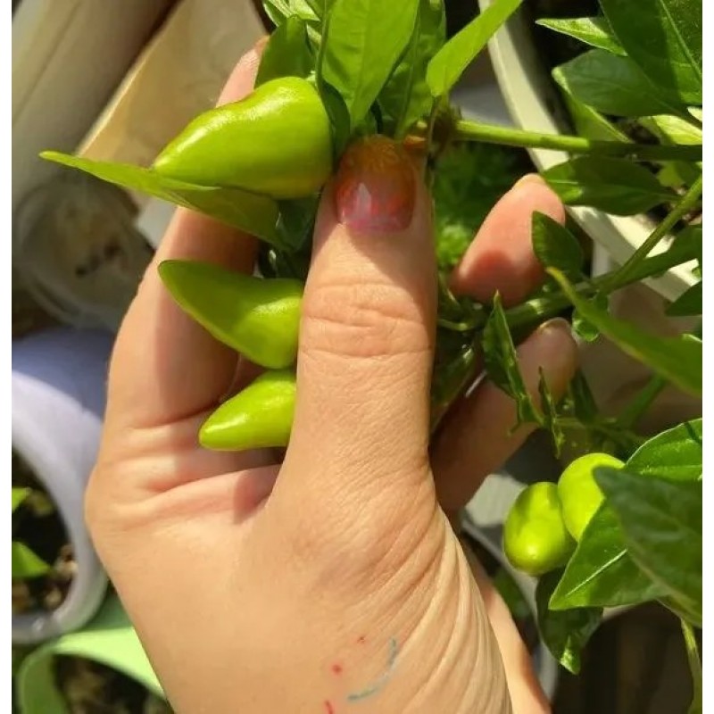 Бесконечный перечный конвейер! Уникальность сорту придает букетный тип формирования завязей и минимальный габитус куста. Растение супердетерминантное, высотой 15-20 см, не нуждается в подвязке и формировании. Плоды массой 20-30 г, острые, ароматные. Сорт с успехом можно выращивать в многолетней, горшечной, комнатной культуре. Очень декоративен в саду благодаря растянутому периоду плодоношения и вертикальному расположению плодов на кусте. В домашней кулинарии используется для приготовления приправ и маринадов, при цельноплодном консервировании. При выращивании в теплице можно разместить до 10-12 растений на 1 м2 в качестве уплотняющей культуры между высокорослыми томатами.