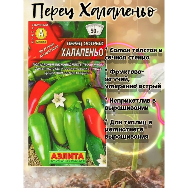 Популярная разновидность перца чили для выращивания в открытом и защищеном грунте. Можно выращивать в горшках. Растет быстро, формирует крепкие штамбовые кусты высотой 50-100 см. На кусте вызревает 25-35 ароматных плодов длиной 5-8 см, диаметром 2,5-3 см, массой до 50 г. В биологической спелости окраска перчиков темно-красная и вкус сладкий, но обычно используют зеленые, недозрелые плоды. Вкус их фруктово-жгучий, умеренно острый – 2 500-8 000 единиц по шкале Сковилла. Для смягчения остроты можно порекомендовать удаление плаценты с семенами. У халапеньо, по сравнению с другими острыми перцами, самая толстая, сочная стенка плодов, поэтому их не сушат, а употребляют свежими, маринованными, запеченными на гриле, фаршированными. Халапеньо нормализует мозговое кровообращение, способен поднимать настроение.