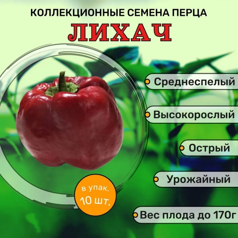 Диковинная новинка с непривычно крупными для острого перца плодами. Толщина сочной, ароматной стенки достигает 5 мм. Это отличный выбор для маринования и приготовления вкуснейших соусов и за кусок. Урожай созревает в средние сроки – через 120-125 дней после появления всходов. Высота полураскидистого куста в теплице – около 70-85 см. Одновременно на растении формируется до 10 перцев. Масса плодов* составляет 155-175 г. Урожайность в защищенном грунте – более 4,5-5 кг/м2.