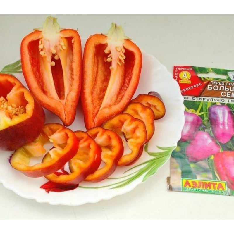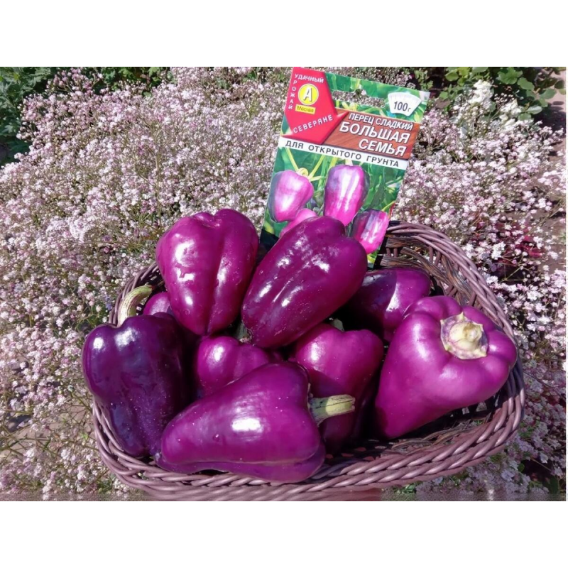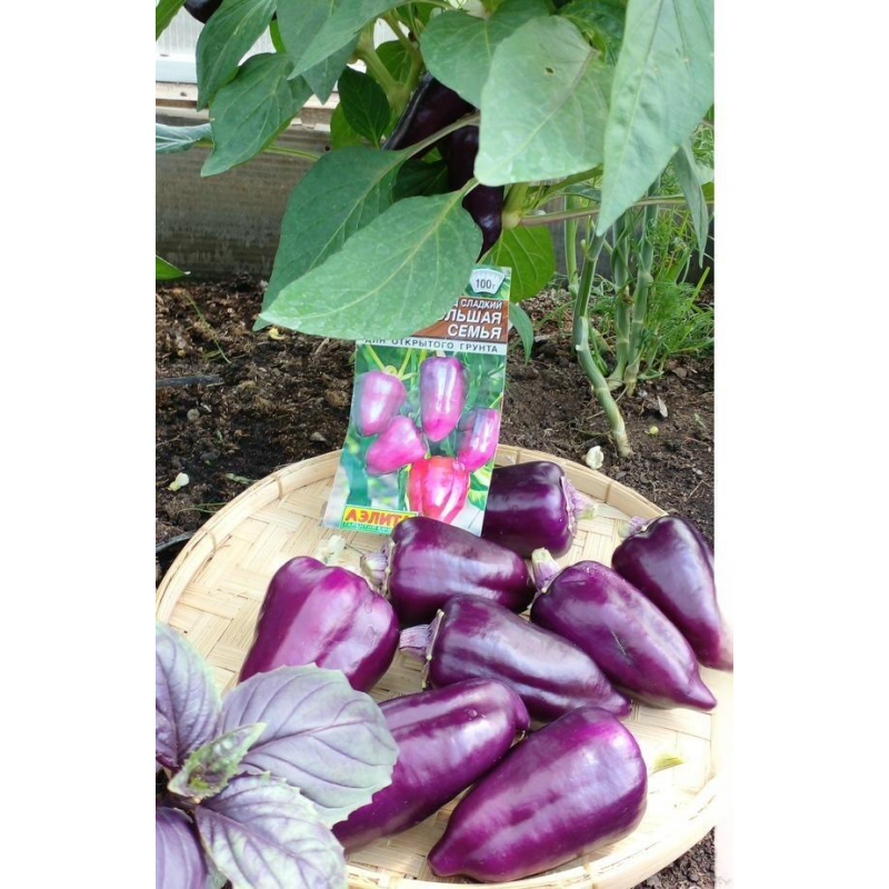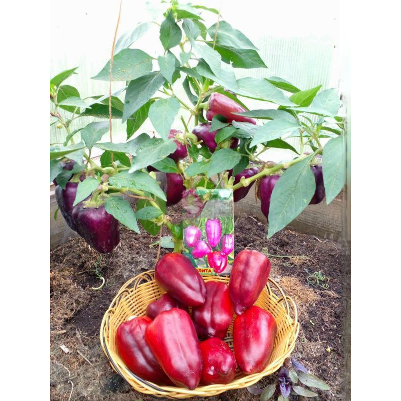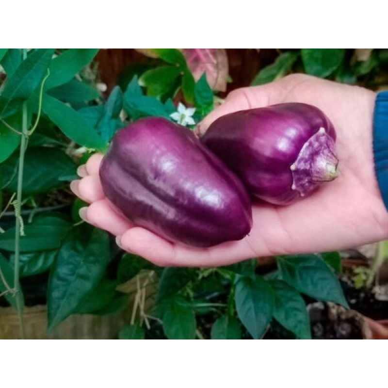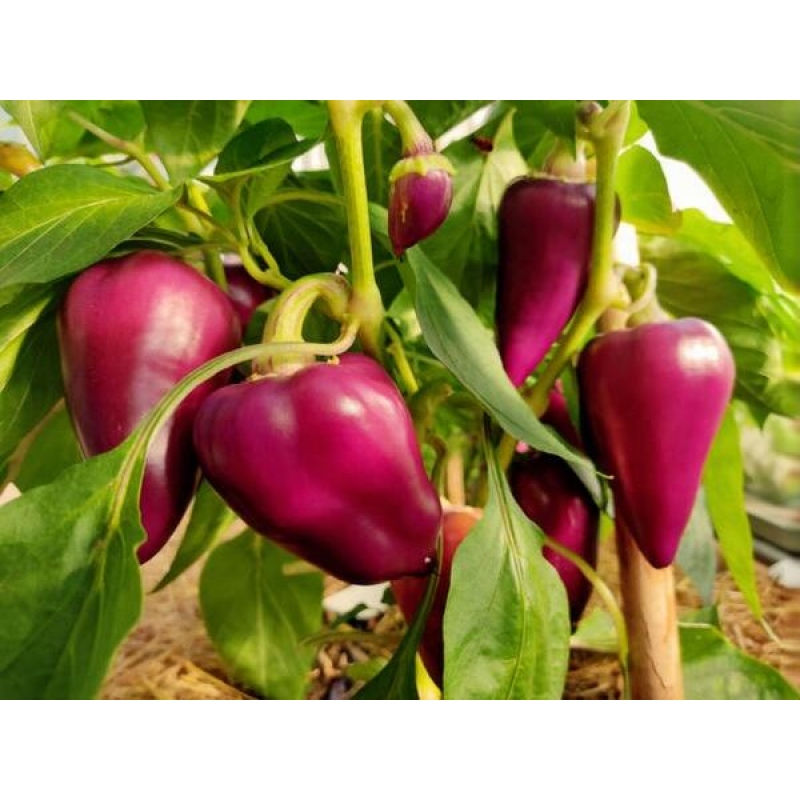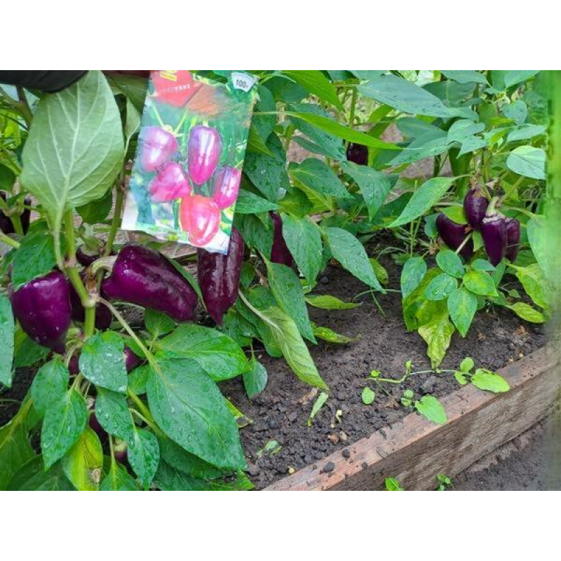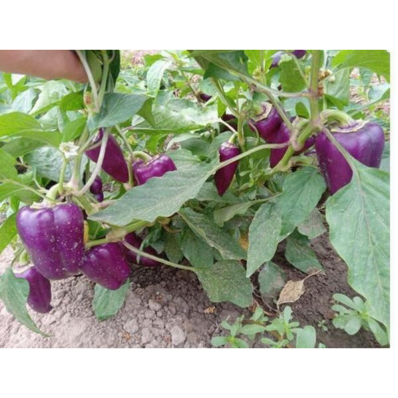 Раннеспелый сорт с отличной урожайностью и необычным внешним видом. От всходов до начала сбора плодов 100-110 дней. Сорт отлично растет и формирует урожай в открытом грунте. Растение компактное, высотой в открытом грунте до 50 см (в теплице выше). Плоды массой до 100 г, хрустящие и сочные, толщина стенки 6-7 мм. В потребительской спелости – фиолетовые, в биологической – бордово-красные. Сорт отлично подходит для свежего потребления, фарширования и запекания. Урожайность 2-3 кг/м2.