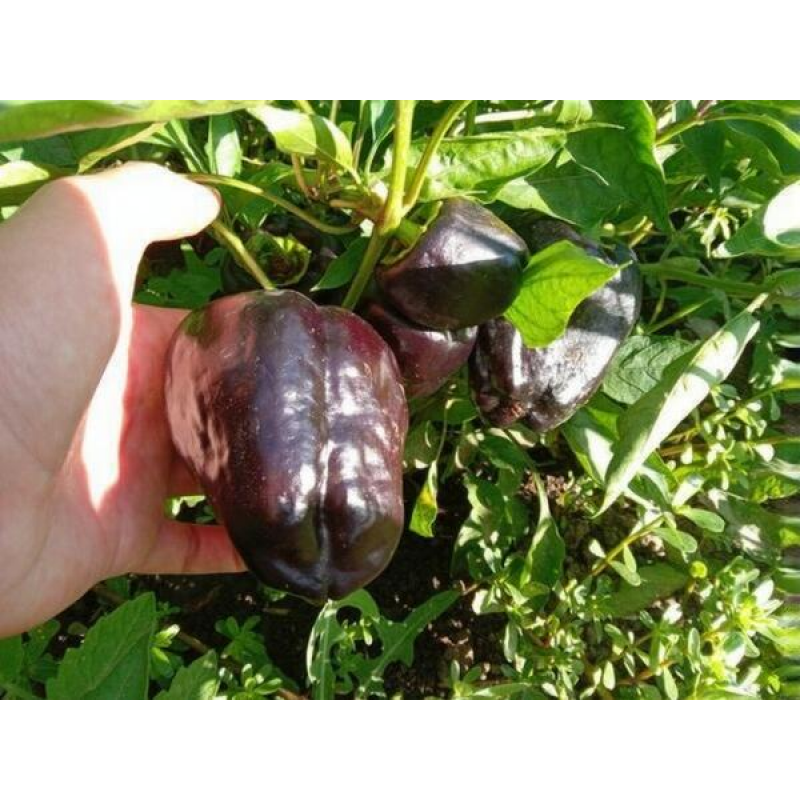 Раннеспелый, толстостенный, салатный сорт. Сочный, сладкий, ароматный и очень красивый. В потребительской спелости плоды фиолетово-черные, в биологической – темно-красные. Урожай созревает через 110-115 дней после появления всходов. Масса плода 200- 230 г, толщина стенки до 8 мм. В защищенном грунте урожайность 7-8 кг/м2.