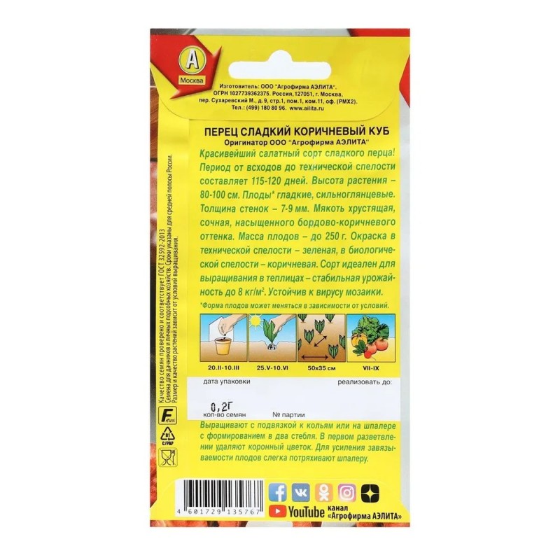 - Сорт семян:перец сладкий, крупноплодный, коричневый