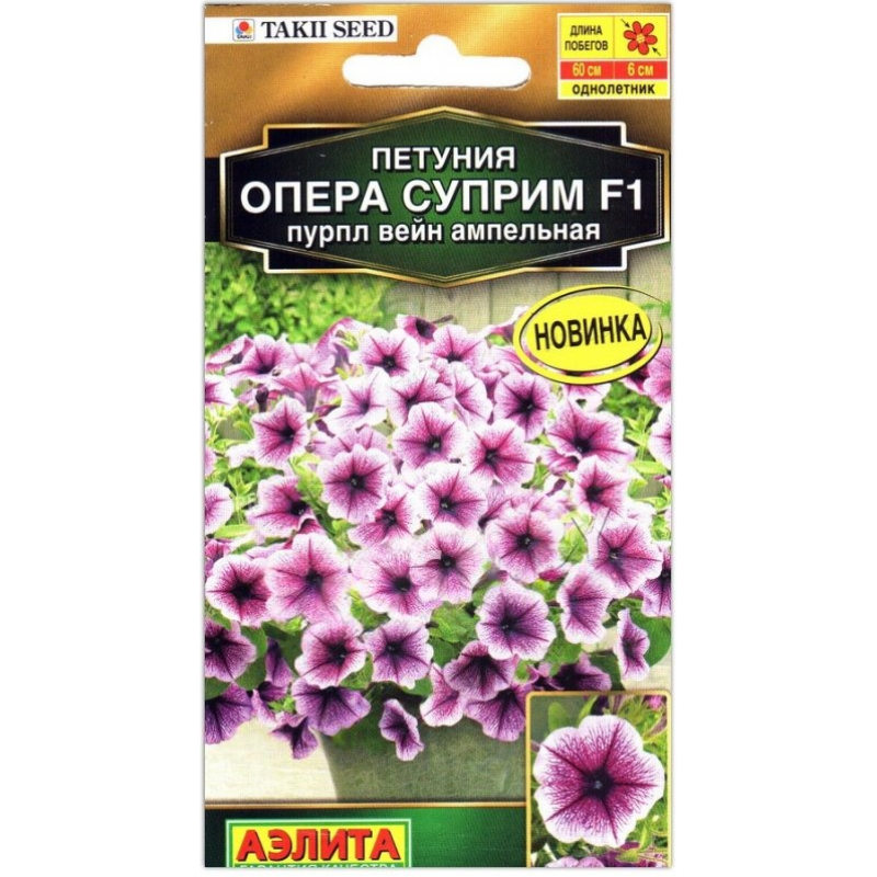 Премиальная серия роскошных ампельных петуний «Opera Supreme F1» от японской компании Takii. Гибриды малочувствительны к длине светового дня, отличаются сильной энергией роста, чрезвычайно обильным цветением, очень красивой формой образующихся каскадов. В разгар лета каждый побег целиком покрыт множеством изящных цветков. Кусты обладают раскидистым габитусом: высота не более 10-20 см, длина побегов 50-60 см. Растения украсят подвесные кашпо, высокие садовые вазоны. Отлично подходят для почвопокровной культуры.