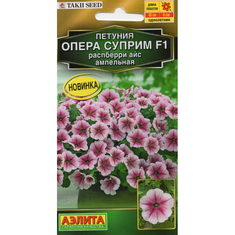 Премиальная серия роскошных ампельных петуний «Opera Supreme F1» от японской компании Takii. Гибриды малочувствительны к длине светового дня, отличаются сильной энергией роста, чрезвычайно обильным цветением, очень красивой формой образующихся каскадов. В разгар лета каждый побег целиком покрыт множеством изящных цветков. Кусты обладают раскидистым габитусом: высота не более 10-20 см, длина побегов 50-60 см. Растения украсят подвесные кашпо, высокие садовые вазоны. Отлично подходят для почвопокровной культуры.
