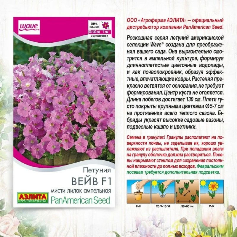 Роскошная серия петуний американской селекции Wave® создана для преображения вашего сада. Она выразительно смотрится в ампельной культуре, формируя длинноплетистые цветочные водопады, и как почвопокровник, образуя эффектные, впечатляющие ковры. Растения прекрасно ветвятся от основания, не требуют формирования. Центр куста не оголяется. Длина побегов достигает 130 см. Плети густо покрыты крупными цветками Ø 5-7 см на протяжении всего теплого сезона. Гибриды украсят высокие садовые вазоны, подвесные кашпо и цветники.
