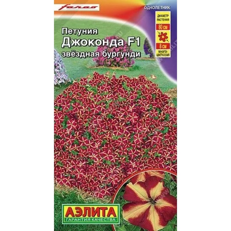 Петуния итальянской селекции компании Farao с непревзойденными характеристиками. Благодаря гену мужской стерильности, она дает ошеломляющее количество цветков и непрерывно цветет с весны до поздней осени. Адаптируется к широкому диапазону температур – успешно выдерживает кратковременные заморозки до – 5 °С и экстремальную жару. Гибрид формирует мощные кусты высотой 25-30 см с интенсивным ветвлением. В ширину они достигают 60-80 см, но при регулярных подкормках вырастают значительно большего размера. Цветки диаметром 7-8 см, не травмируются дождями и ветром. Петуния серии Джоконда является серьезной конкуренткой сурфиниям, которые могут размножаться только вегетативно. Украсит собой клумбы, рабатки, подвесные корзины и садовые вазы.