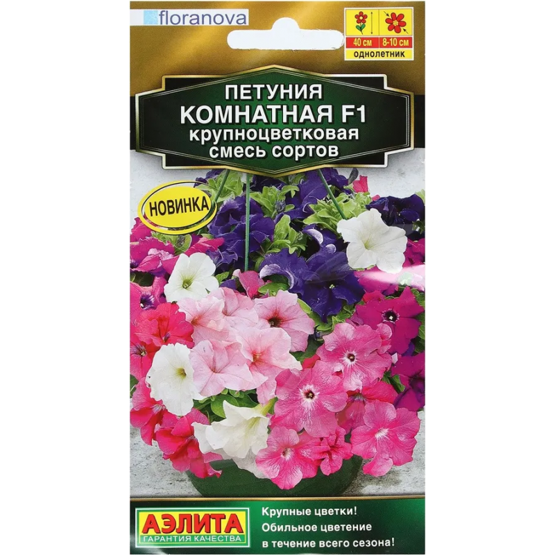 Смесь крупноцветковых петуний от английской компании Floranova. Растения с отличным ветвлением и крепкими побегами, которые не вытягиваются и образуют плотный куст, высотой* и диаметром около 35-40 см. Цветки крупные, диаметром 8-10 см, поражают очень разнообразной окраской и пышностью цветения в течение всего сезона. Гибриды прекрасно растут в цветочных горшках, вазонах и балконных ящиках, великолепно подходят для оформления клумб, рабаток и бордюров. Для горшка диаметром до 11 см потребуется всего 1 растение!
