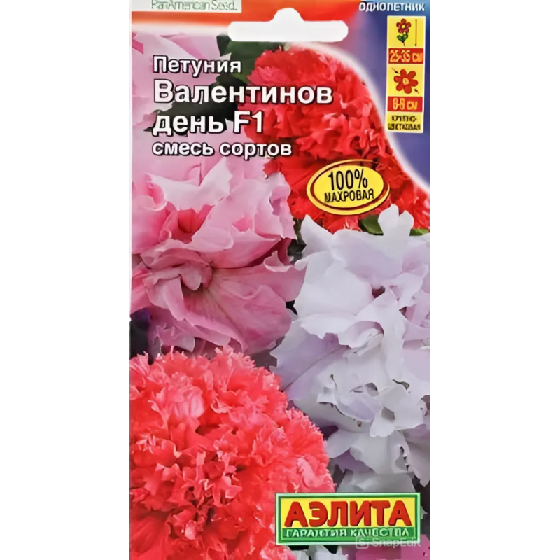 100% махровая специальная смесь петуний американской селекции от компании PanAmerican Seed. Подобраны два эффектных гибрида в одной гамме, но с разной интенсивностью цвета. У Valentine F1 цветок мягкого красного оттенка с зубчатыми лепестками. У Double Cascade F1 Orchid Mist окраска бело-розовая с тенями, изменчивая, непостоянная. Кусты прямостоячие, крепкие, хорошо разветвленные, высотой 25-35 см и шириной 25-30 см. Цветки густомахровые, диаметром 8-9 см. Смесь рекомендуется для контейнерного выращивания и оформления солнечных цветников открытого грунта.