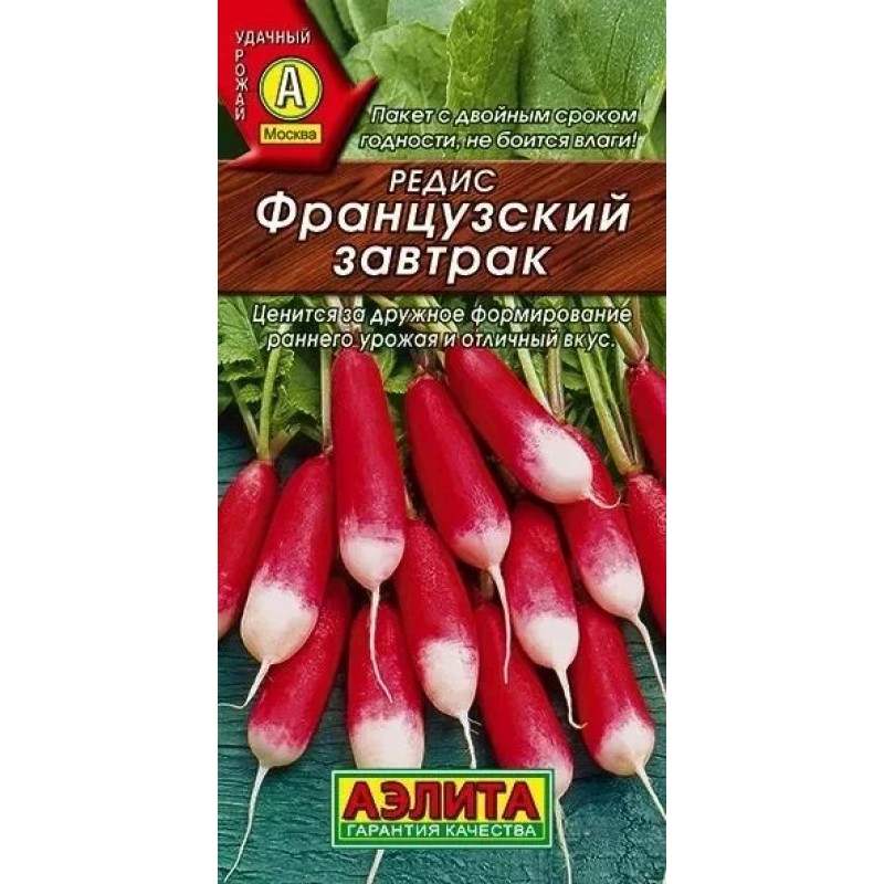 Крупноплодный раннеспелый редис с улучшенными вкусовыми характеристиками. По сравнению с традиционными сортами отличается более сладкой, сочной и нежной мякотью. Растения устойчивы к цветушности, формируют небольшие листовые розетки. Цилиндрические корнеплоды массой 20-30 г начинают созревать через 3 недели от всходов. Вкус в меру острый. Кожица тонкая и гладкая. Со времен первых упоминаний о «французском» редисе в мировой кулинарии корнеплоды употребляли в виде простой и полезной закуски, разрезая их пополам, смазывая сливочным маслом и посыпая солью.