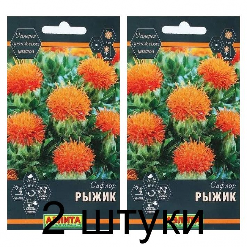 Привлекающий внимание, эффектный однолетник. Помимо его неоспоримых декоративных качеств, сафлор знаменит как масличное и медоносное растение. Высота* куста около 40-45 см, шипы редкие. Пышные апельсиновые цветки диаметром 4 см красиво контрастируют с изумрудными листьями. Они содержат пигмент картамин – известный желтый краситель для пищевых продуктов и тканей. Из семян выделяют масло, обладающие целебными и косметическими свойствами. Сорт используется в свежем букете, подходит для цветников и бордюров. Растительные остатки применяются в качестве сидеральной культуры. * Высота растений зависит от условий выращивания.