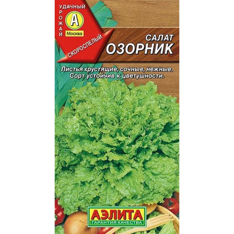 Один из самых первых листовых салатов на вашем столе! Растет очень быстро, образуя крупные (до 40 см в диаметре) красивые розетки листьев. Листья хрустящие, невероятно сочные и нежные на вкус, не горчат и не грубеют. Придадут свежесть и аромат любому витаминному салату и бутерброду. Сорт устойчив к цветушности, дает большой урожай при любой длине дня, может выращиваться в открытом грунте и весенних теплицах для получения сверхранней продукции. Урожайность 3-3,5 кг/м2.