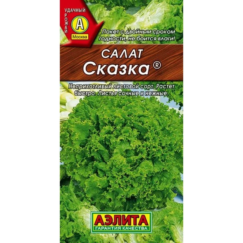 Неприхотливый, раннеспелый листовой сорт. Первые одиночные листья можно собирать на 15-20 день от всходов, полностью развитые листовые розетки – через 46-49 дней. Растения устойчивы к стеблеванию и отли-чаются быстрым ростом при любой длине дня. Розетка листьев в полном развитии диаметром 18-20 см, массой 200-250 г. Листья без горечи, маслянистые, сочные, с нежным вкусом. Урожайность зелени высокая, около 3 кг/м2.
