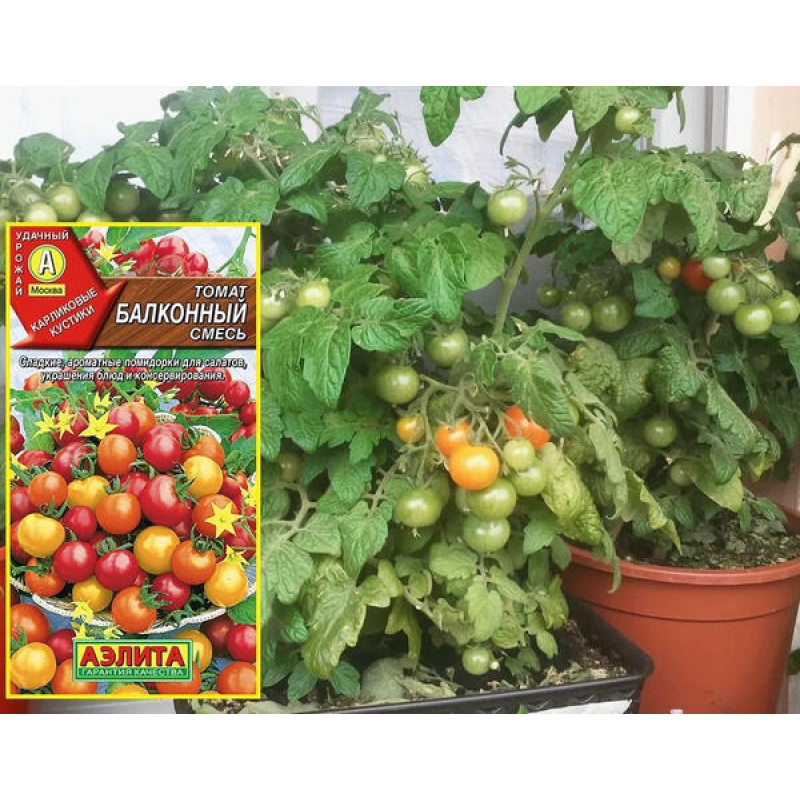 Смесь ультраранних, низкорослых томатов для балкона, открытого грунта, теплиц. Период от всходов до плодоношения 85-90 дней. В состав входят сорта: МОНЕТКА® (плоды желтые), КЛЮКВА В САХАРЕ® (плоды красные) и ДЕТКИ-КОНФЕТКИ® (плоды оранжевые). Растения детерминантные, высотой 45-60 см, штамбовые. Томатики массой 10-15 г, сладкие, ароматные. Использование универсальное.