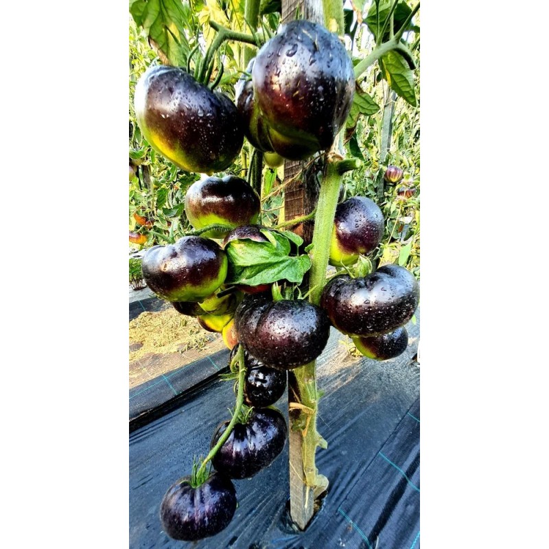 Достойная новинка томата с мировым именем. Сорт «Black beauty» создан американцем Бредом Гейтсом. Отлично подходит для теплиц, индетерминантные кусты достигают высоты 2-х (и более) метров и позволяют получить свыше 15-16 кг/ м 2 ароматных, сладких плодов. Первый урожай созревает через 112-115 дней после всходов. В период налива помидоров их оттенок меняется от темно-фиолетового с зелеными вкраплениями до черно-красного в потребительской спелости. Средняя масса плодов* 180-220 г, вес максимально крупных – до 500 г. Эффектная окраска и великолепный вкус продукции не оставят равнодушным ни одного гурмана.