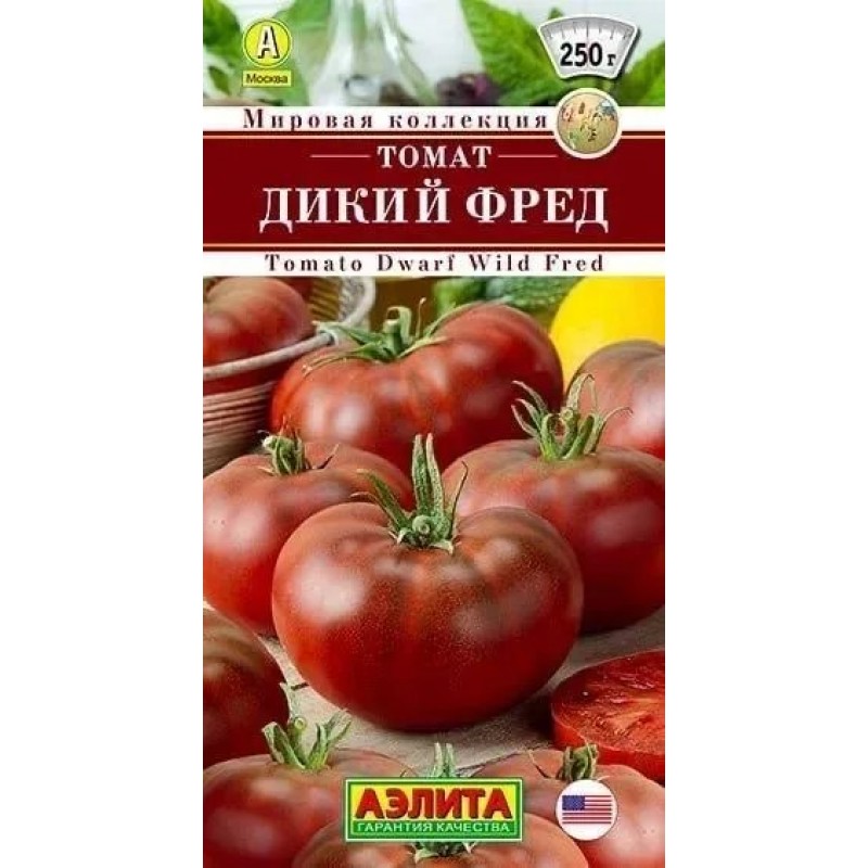 Низкорослый сорт американской селекции. Знаменит в мире под названием Dwarf Wild Fred. Стал фаворитом благодаря компактности и выносливости растений, а также стабильной урожайности даже в открытом грунте. Среднеспелый: период от появления всходов до созревания 110-115 дней. Куст детерминантный, высотой в теплице 0,9-1,1 м. Томаты крупные, массой 200-250 г, красивой окраски и высоких вкусовых качеств. Мякоть нежная, сладкая, в меру сочная, с легким пряным ароматом. Сорт отлично подходит для салатов и бутербродов. Урожайность под пленкой до 13-16 кг/м2.