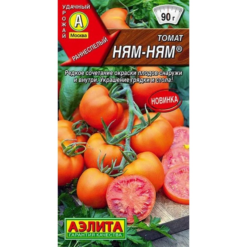 Необычный раннеспелый сорт c оранжевой кожицей и красной мякотью. Первый урожай собирают на 105-110 день после всходов. В средней полосе рекомендуется для пленочных укрытий, в южных регионах – для открытого грунта. Растения индетерминантные, высотой 1,6-1,8 м. Первое соцветие закладывается над 6-7 листом, последующие – через 1-2 листа. Плоды массой около 90 г На вкус они сладкие, сочные, с приятным ароматом. Томаты прекрасно подходят для салатов и украшения блюд, для цельноплодного консервирования. После сбора хранятся продолжительное время. Сорт устойчив к основным болезням культуры. Урожайность – свыше 8 кг/м2.