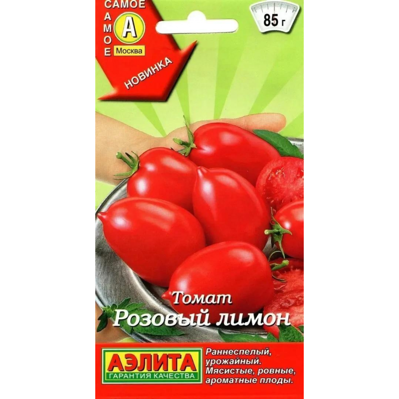 Томат Розовый лимон. Урожайный, раннеспелый сорт с розовыми плодами интересной формы. Растения индетерминантные, отлично плодоносят в защищенном грунте. В каждой кисти образуется 5-7 томатов. Созревание наступает через 100-105 дней после появления всходов. Плоды-лимончики массой 75-85 г. Ровные, красивые, плотные, мясистые, гармоничного вкуса. Подходят для свежего употребления и домашней кулинарии. Урожайность в теплице – около 8-10 кг/м2.