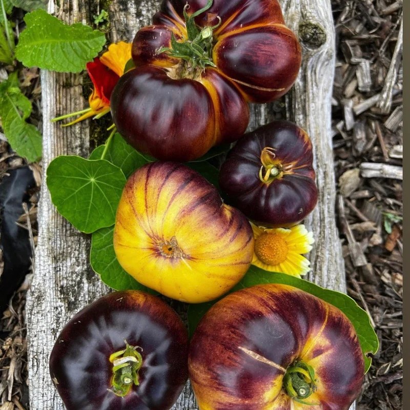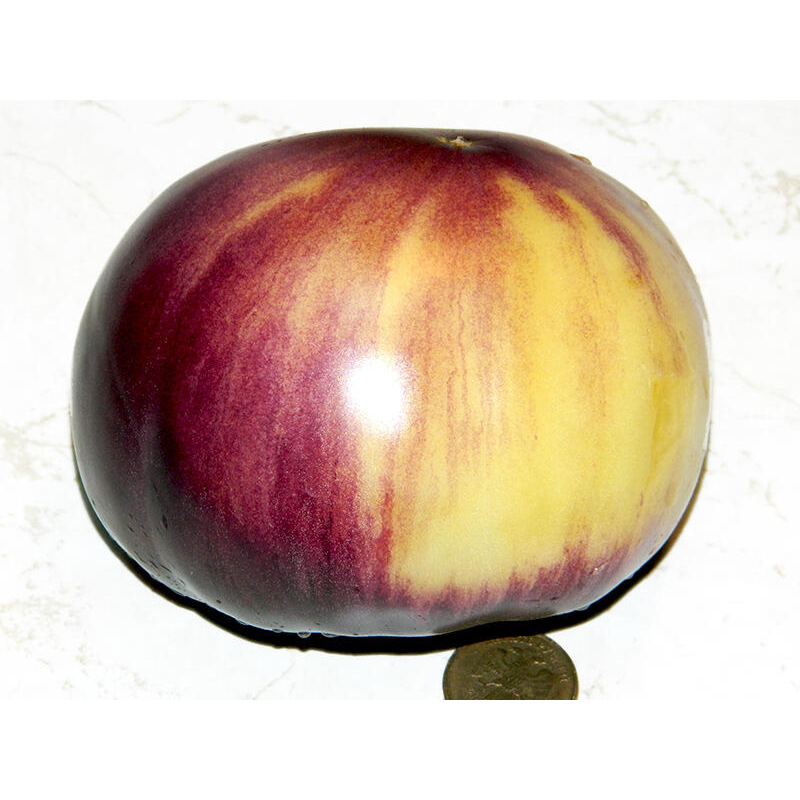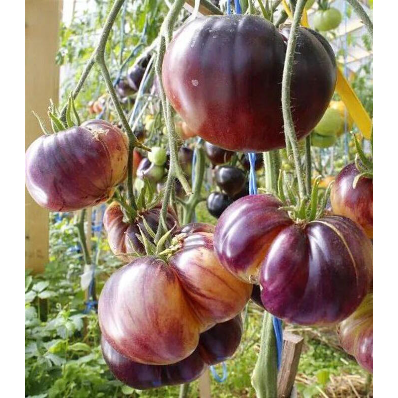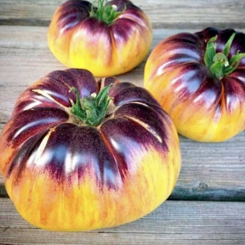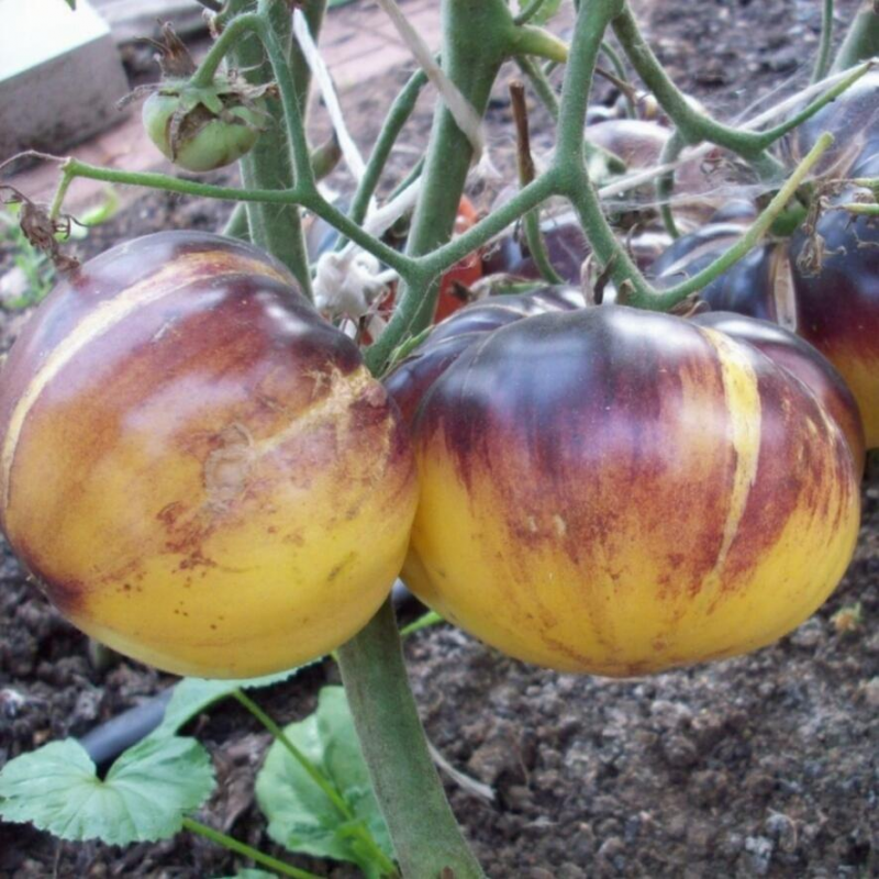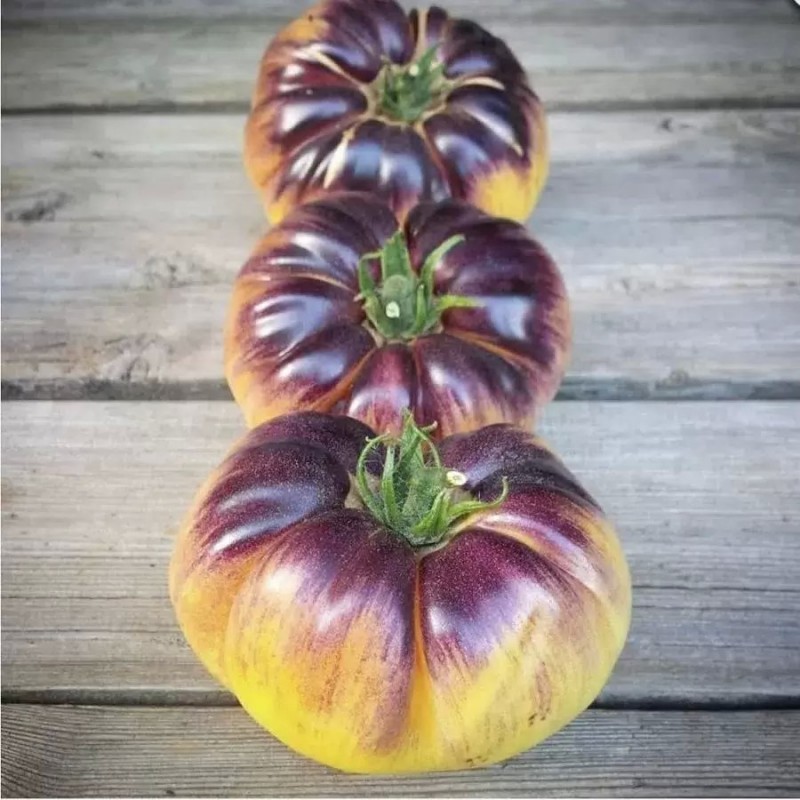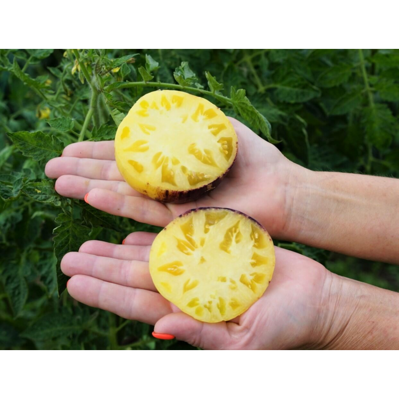 Экзотический среднеспелый сорт из Бельгии под названием Sart Roloise покоряет всех своим оригинальным видом и цветом. Для теплиц средней полосы и открытого грунта южных регионов. От всходов до созревания первых томатов 110-115 дней. Растения индетерминантные, в теплице вырастают до 180 см. Куст формирует простые кисти по 3-5 завязей. Плоды плоскоокруглые, в стадии зрелости кремового цвета с фиолетовыми штрихами на боках и плечиках, массой 250-350 г. Очень красивые! Не вызывают аллергии. Мякоть плотная, мясистая и сочная, с необычным десертным вкусом. Сорт с высокой устойчивостью к стрессовым условиям, отлично завязывает плоды даже при недостаточном освещении.