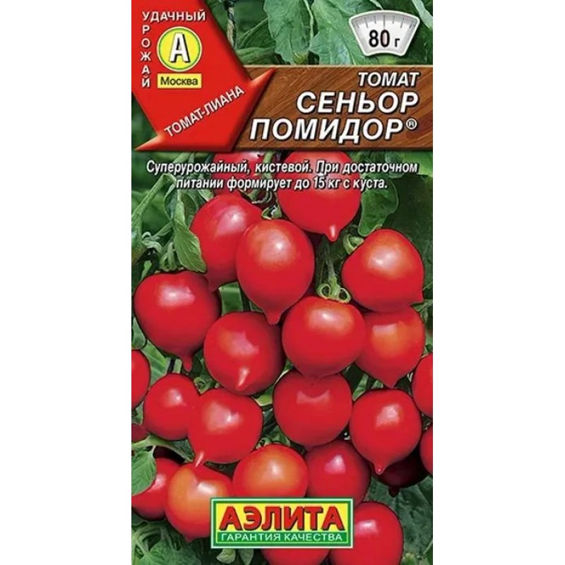 Высокопродуктивный томат-лиана для теплиц. Среднеспелый, от всходов до первого сбора плодов 111-115 дней. Индетерминантный, достигает высоты 3 м. Плоды в больших сложных кистях по 20-30 шт., созревают не одновременно. Рекомендуется постепенная уборка в стадии бланжевой спелости. Плоды мясистые, разные по размеру, средней массой 65-80 г. При нормировании завязей в кистях достигают 100-120 г. Томаты лежкие, хорошо дозариваются, высокие вкусовые качества сохраняют 1-1,5 месяца. Прекрасно подходят для консервирования и приготовления соусов.