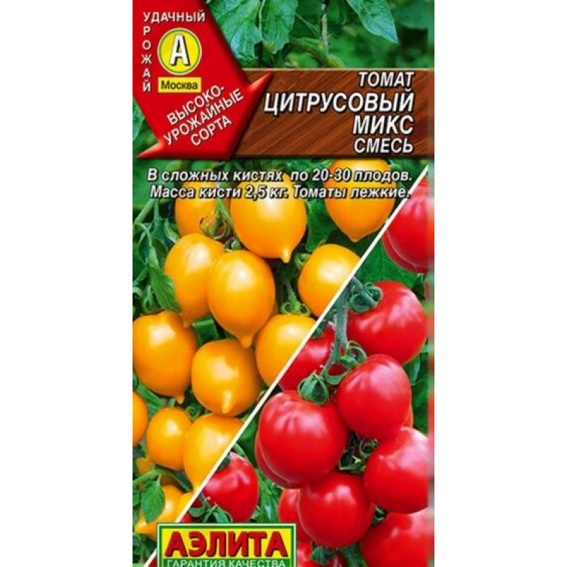- Сорт семян:лимоновидный с носиком, среднеспелый, индетерминантный, кистевой, смесь желтого и красного сортов