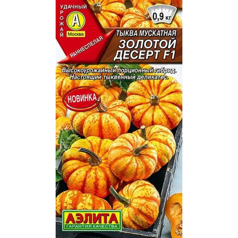 Неприхотливый раннеспелый гибрид. Настоящий тыквенный деликатес с высоким содержанием витаминов. Период от всходов до начала созревания составляет 85-100 дней. Растения среднеплетистые, формируют одновременно 5-6 тыквин на одной плети. Прекрасно растут на опорах, что позволяет использовать их для вертикального озеленения беседок и пергол. Плоды порционные, сегментированные, массой 0,5-0,9 кг. Мякоть хрустящая, с нежным вкусом и тонким ароматом. Отличный вариант для детского питания. Гибрид устойчив к неблагоприятным погодным условиям. Характеризуется богатым урожаем и длительным хранением.