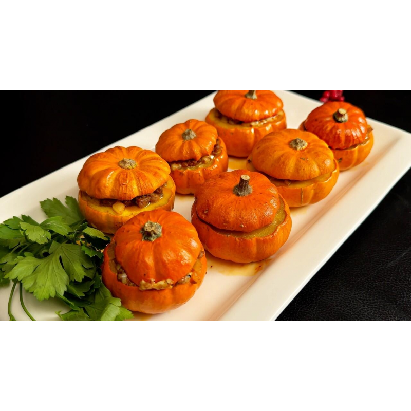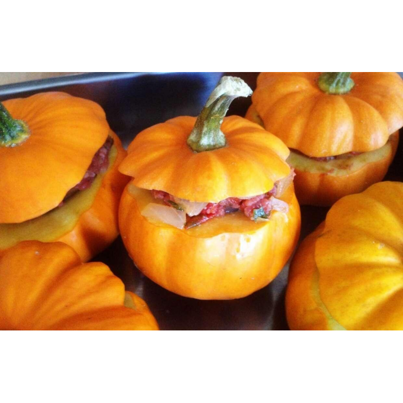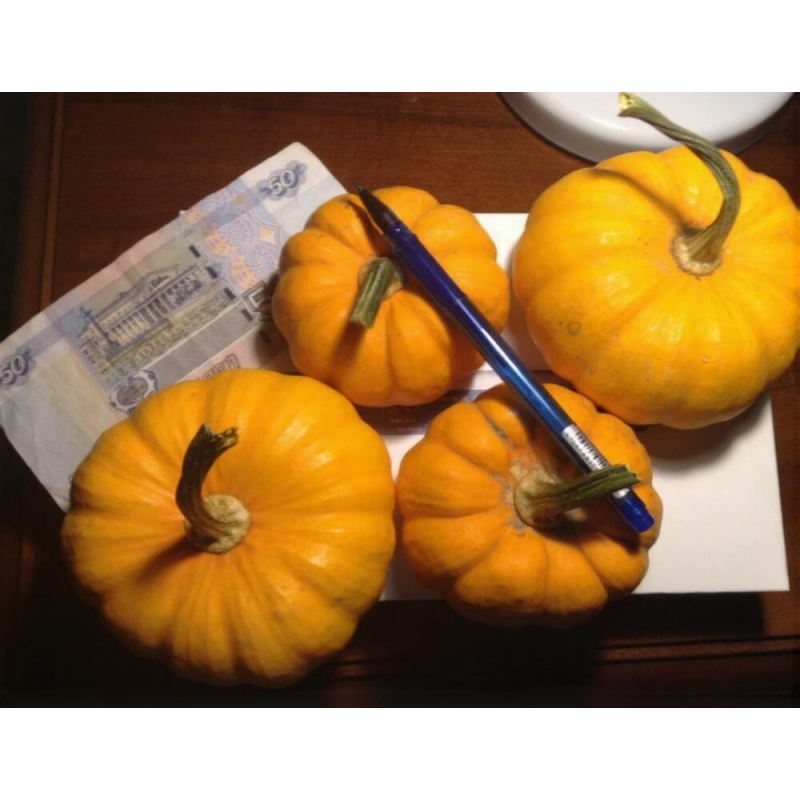 Очаровательная миниатюрная тыква для употребления в пищу и украшения интерьера. Сорт раннеспелый, от всходов до уборки 95-100 дней. Растения плетистые, формируют 8-10 плодов. Прекрасно смотрятся при выращивании на шпалерах и заборах. Тыквины массой 300-400 г и диаметром до 15 см. Мякоть плотная, сочная. Вкусовые качества отличные. Подходит для различной кулинарной переработки. Плоды долго хранятся.