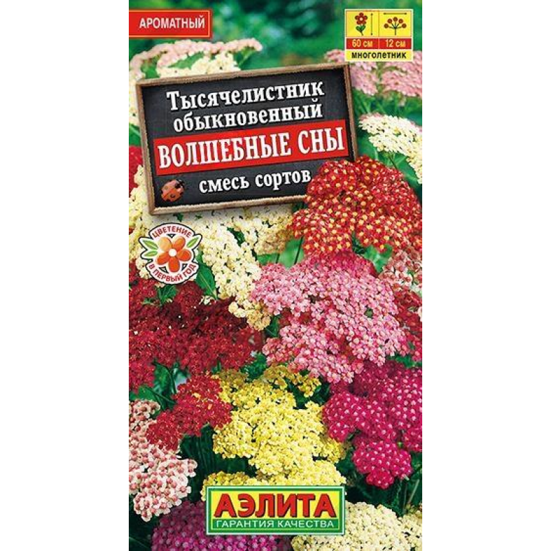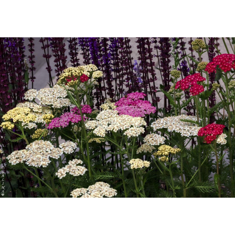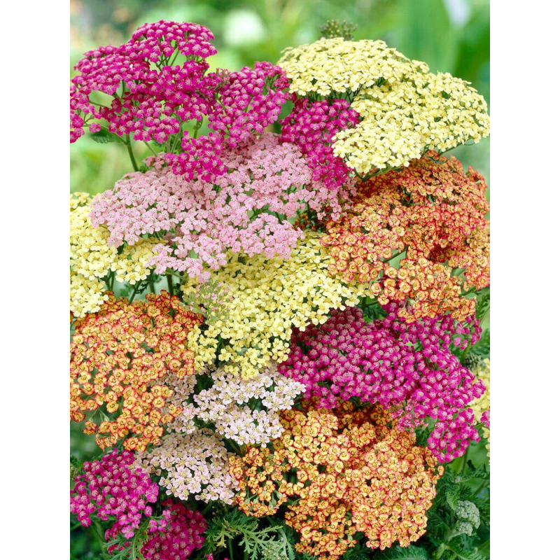 Ценная смесь со всеми возможными у тысячелистника окрасками. Растения многолетние, выносливые, засухоустойчивые и зимостойкие. Кусты многостебельные, высотой около 60 см. Красивая мелкорассеченная листва и щитковидные соцветия диаметром 10-12 см имеют пряный «степной» аромат. Душистые и медоносные растения привлекают разноцветных бабочек. Тысячелистник положительно влияет на рост растений-соседей. Рекомендуется для оформления миксбордера, малоуходных цветников природного стиля, сада пряных трав. Соцветия пригодны для срезки, в т. ч. в сухие зимние букеты.