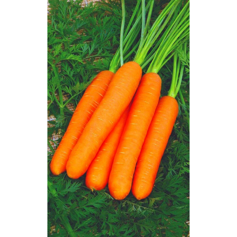 Среднеспелый, суперсладкий сорт! Пучковая спелость на 50 день, полностью урожай готов к уборке на 90-100 день. Корнеплод целиком погружен в почву, снаружи и внутри не зеленеет, цилиндрический, тупоконечный, длиной 16-18 см, массой 100-190 г, с маленькой сердцевиной, устойчивые к растрескиванию. Мякоть красно-оранжевая, сочная, сладкая. Содержание сухого вещества — 13,7 %, сахара — 7,2%, β-каротина — до 20 мг%. По урожайности значительно превосходит популярный стандартный сорт Нантская 4.