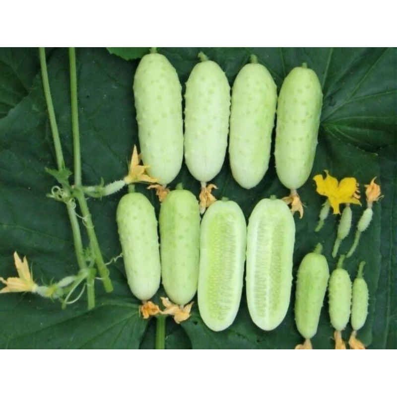 Суперурожайный, среднеспелый, пчелоопыляемый гибрид для открытого грунта и парников. Плоды снежно-белого цвета, цилиндрической формы, крупнобугорчатые, длиной 10-12 см, плотные, хрустящие, сладкие и ароматные.