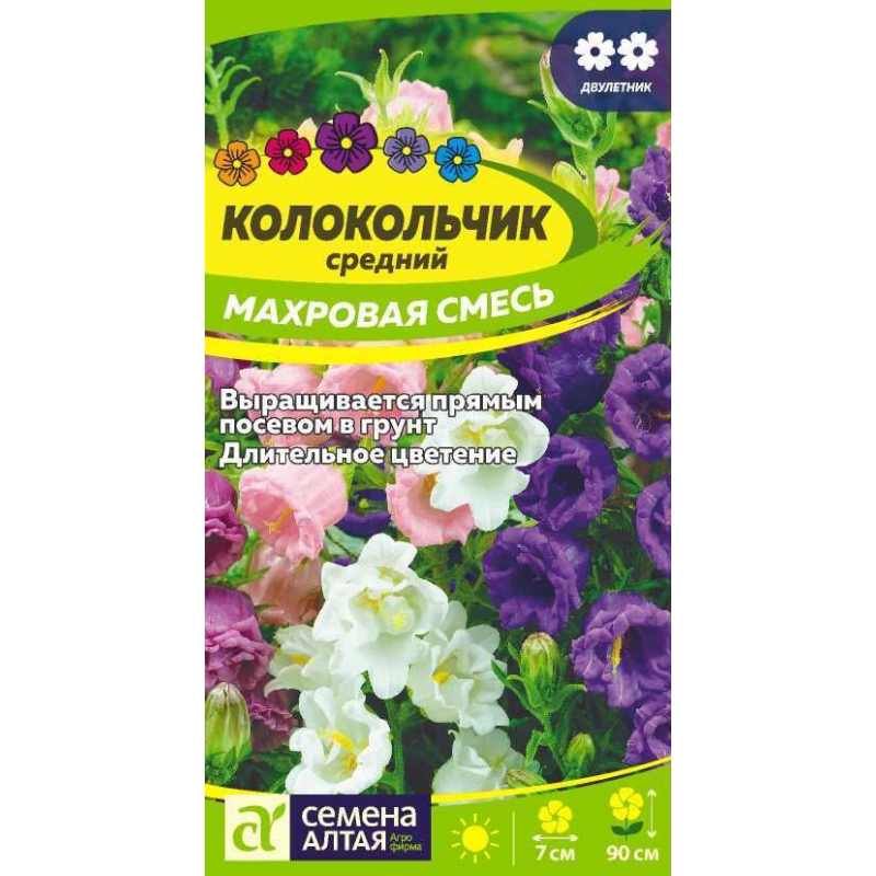 Эффектное двулетнее растение с крупными (Ø6-8 см) махровыми бокальчато-колокольчатыми цветками. Стебли прямостоячие, мощные, высотой до 80 см. Цветки собраны в большие пирамидальные соцветия 60-70 см длиной. Колокольчики светолюбивые, холодостойкие, влаголюбивые, но не переносят застоя воды в почве. Используются для одиночных и групповых посадок в сборных цветниках или рабатках. Отлично подходят для букетов, срезанные цветы сохраняются в воде до двух недель. Хороший медонос.