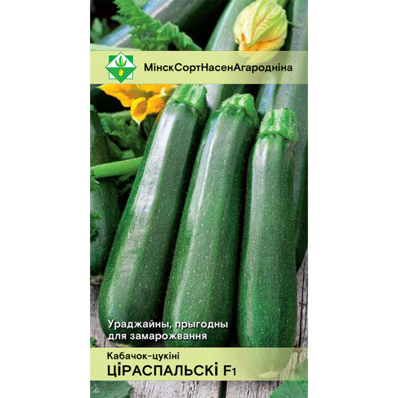 Среднеранний урожайный гибрид. Период от всходов до первого сбора плодов 46-50 дней. Растение кустового типа, компактное. Плоды удлиненно-цилиндрической формы, гладкие, блестящие, темно-зеленой окраски, массой 0,7-0,9 кг. Мякоть белая, плотная. Дегустационная оценка 4,8 балла. Универсального назначения. Долго сохраняет товарные качества после уборки. Пригоден для замораживания. Качество семян проверено и соответствует Постановлению МСХиП РБ №37 от 29.10.2015г.