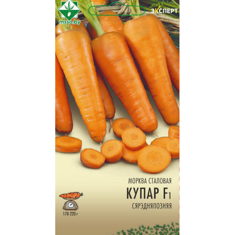 Среднепоздний гибрид голландской селекции. Корнеплоды полуконической формы, с закругленным кончиком, длиной 18-20 см, темно-оранжевые, с почти гладкой поверхностью, устойчивы к растрескиванию. Сердцевина ярко-оранжевая, занимает около 20 процентов диаметра корнеплода. Вкусовые и товарные качества высокие. Обладает отличной лежкостью. Высокоурожайный в самых тяжелых почвенно-климатических условиях. Качество семян проверено и соответствует Постановлению МСХиП РБ №37 от 29.10.2015г.
